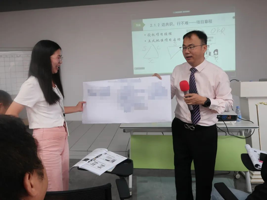 賀老師系統(tǒng)地講授了項(xiàng)目管理的基礎(chǔ)理論、基本概念、規(guī)范流程、工具模型、典型案例,通過分組討論、場景模擬、游戲互動(dòng)等豐富多彩的培訓(xùn)形式,強(qiáng)化了大家對相關(guān)知識(shí)點(diǎn)的理解和掌握。