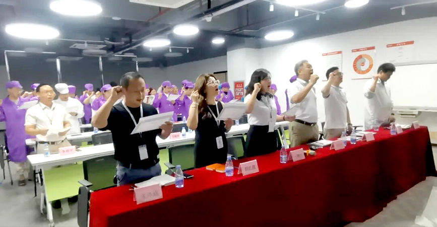 在莊嚴(yán)的氛圍中,班組長(zhǎng)們整齊列隊(duì),緊握右拳,高聲宣誓,鏗鏘有力的誓言回蕩在會(huì)場(chǎng),展現(xiàn)了班組長(zhǎng)們堅(jiān)定的決心和信念。
