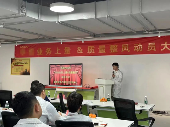 質(zhì)量推進(jìn)組成員,通過產(chǎn)品質(zhì)量知識(shí)、活動(dòng)說明、質(zhì)量之思三個(gè)方面進(jìn)行“質(zhì)量季”主題活動(dòng)宣講。動(dòng)員邁騰電子全員參與,全員行動(dòng),把好每一道質(zhì)量關(guān)。