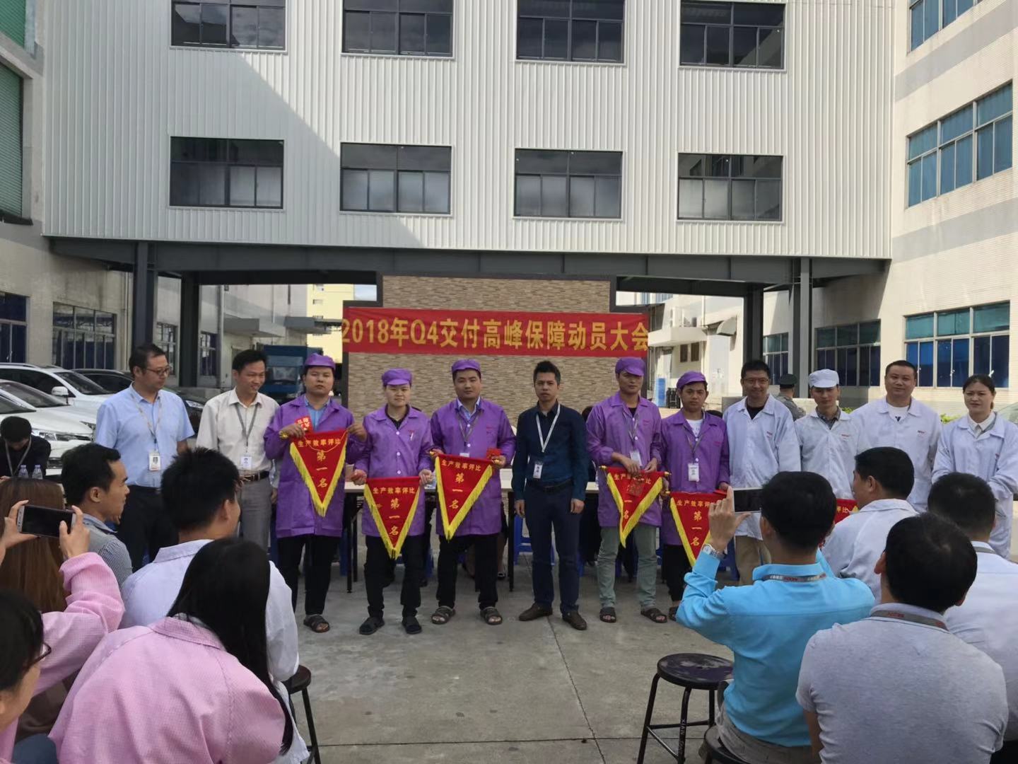 2018年11月9日,深圳市邁騰電子有限公司2018年交付高峰保障動(dòng)員大會(huì)在惠州邁騰科技工廠成功舉辦。會(huì)議以“守住產(chǎn)品質(zhì)量生命線(xiàn),保障生產(chǎn)交付高峰期”為主題,全面總結(jié)了2018年邁騰電子在轉(zhuǎn)型調(diào)整中取得的成績(jī)與不足,并對(duì)Q3季度表現(xiàn)突出員工進(jìn)行表彰獎(jiǎng)勵(lì)。