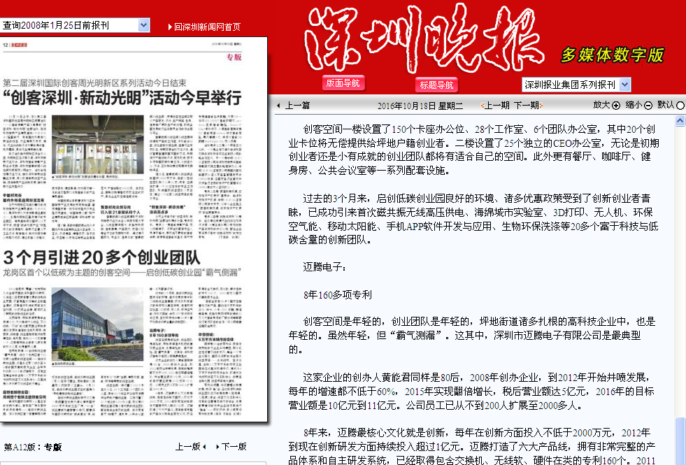 創(chuàng)新發(fā)展,深圳市邁騰電子有限公司應(yīng)該說是坪地街道的佼佼者。黃能君,作為“80后”邁騰電子的創(chuàng)辦人,可謂創(chuàng)業(yè)創(chuàng)新的弄潮兒。他先后創(chuàng)辦開展網(wǎng)通、數(shù)碼產(chǎn)品的研發(fā)、制造及銷售;2008年黃能君在坂田創(chuàng)辦了邁騰電子有限公司,兩年后將公司遷至坪地。