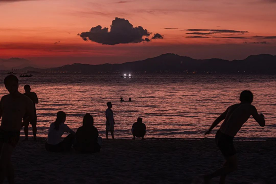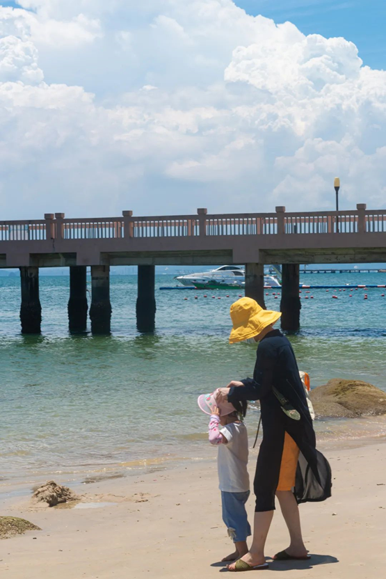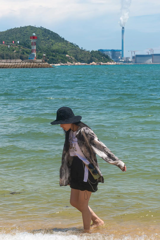 卷起褲腳,踩著細(xì)沙 踏浪奔跑
