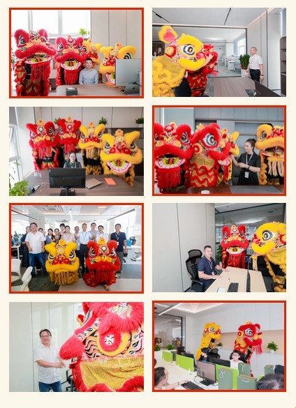 鑼鼓聲起,四頭威武的雄獅登場(chǎng),靈動(dòng)的舞姿瞬間點(diǎn)燃現(xiàn)場(chǎng)氣氛。隨后,總經(jīng)理黃總、副總經(jīng)理李總攜手公司高層領(lǐng)導(dǎo)為雄獅點(diǎn)睛,“點(diǎn)金睛,明方向”,寓意邁騰電子未來(lái)眼明心亮、蒸蒸日上;緊接著的瑞獅吐對(duì)聯(lián)環(huán)節(jié),雄獅躍動(dòng)間吐出對(duì)聯(lián),由公司領(lǐng)導(dǎo)接過(guò)瑞獅口中吐出的對(duì)聯(lián),對(duì)聯(lián)展開(kāi),字字鏗鏘,寄托著對(duì)未來(lái)發(fā)展的美好祈愿。