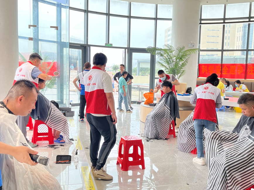 義剪區(qū)域,理發(fā)師一把剪刀、一把推子、一把梳子、一個圍布,工具雖簡單,但真情服務卻讓人暖在心里。為廣大員工解決“頭”等大事。